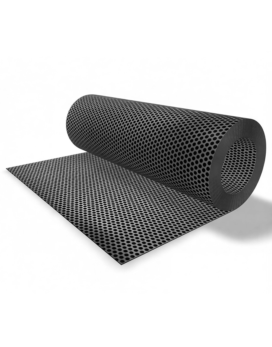 PREFA perforovaný hliníkový plech hrúbky 0,7 mm, s kruhovými otvormi Ø 5/7 mm. Dostupný vo viacerých farbách.