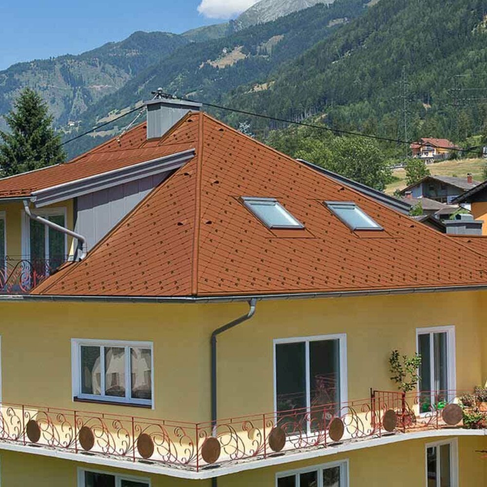 Vďaka nízkej hmotnosti len približne 2,6 kg/m² je krytina vhodná aj na obnovu starších krovov bez nutnosti ich zosilnenia. Hliníkové jadro s kvalitnou povrchovou úpravou je odolné proti korózii, UV žiareniu aj extrémnym výkyvom počasia, čo zaručuje dlhodobú funkčnosť bez náročnej údržby. Strešný systém PREFA je navyše konštrukčne riešený ako odvetraná skladba, ktorá spoľahlivo odvádza vlhkosť a prispieva k zdravej streche.