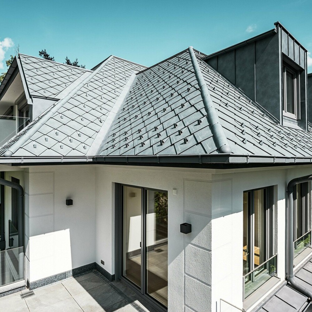 Napíšte námPREFA falcovaná šablóna 29 × 29 patrí medzi osvedčené hliníkové strešné krytiny, ktoré spájajú tradičný vzhľad s modernou životnosťou. Maloformátové prevedenie je ideálne na strechy s vikiermi, úžľabiami alebo oblúkmi, kde vynikne presné kladenie a detailné spracovanie. Plastické prelisy dodávajú streche dynamický tieňový efekt a zároveň zvyšujú pevnosť jednotlivých prvkov.