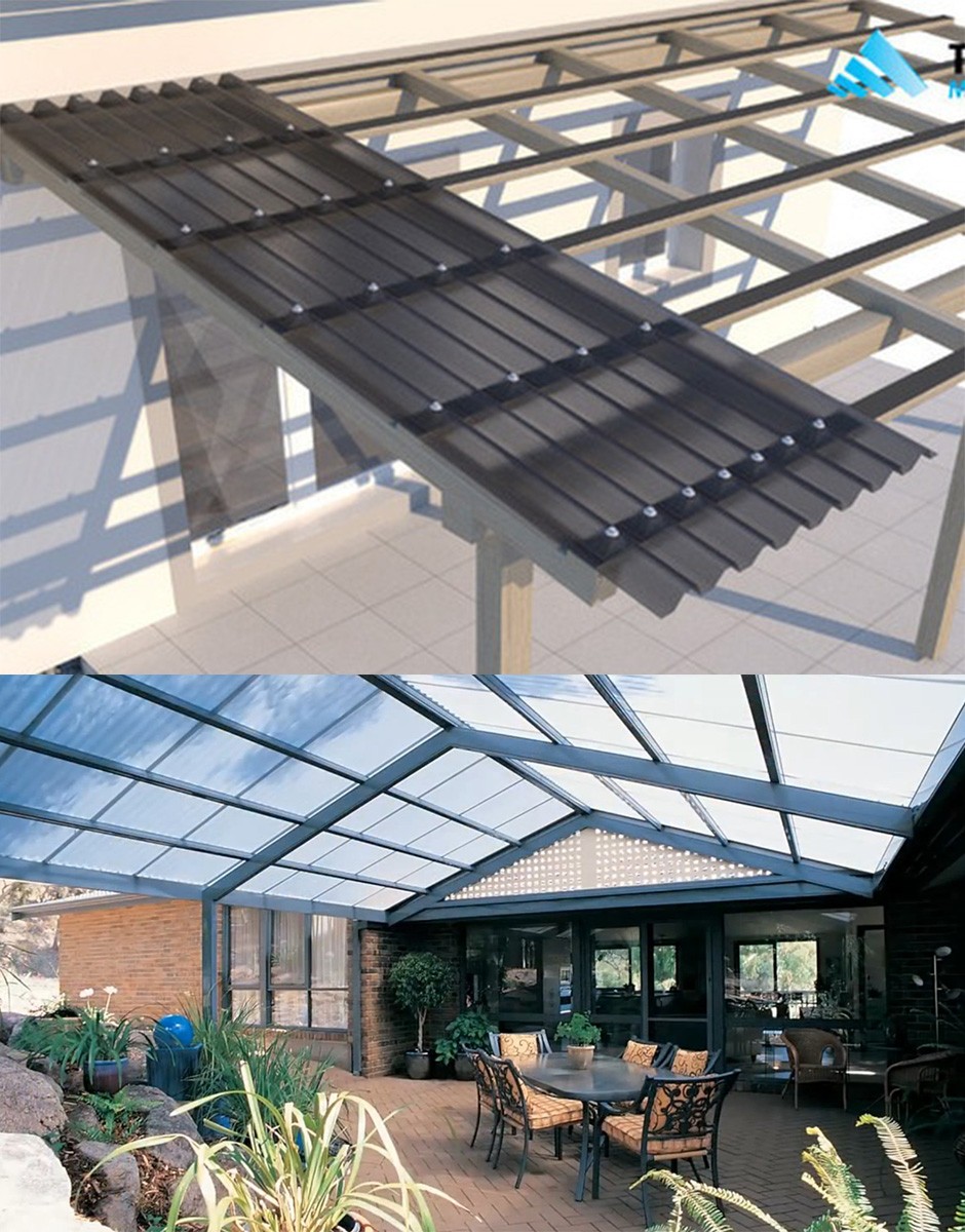 Trapézový polykarbonát je vhodný pre rôzne aplikácie – od zastrešenia pergol, terás, prístreškov pre autá až po presvetlenie objektov a drobných stavieb, kde je dôležitá kombinácia svetla, odolnosti a rýchlej montáže.